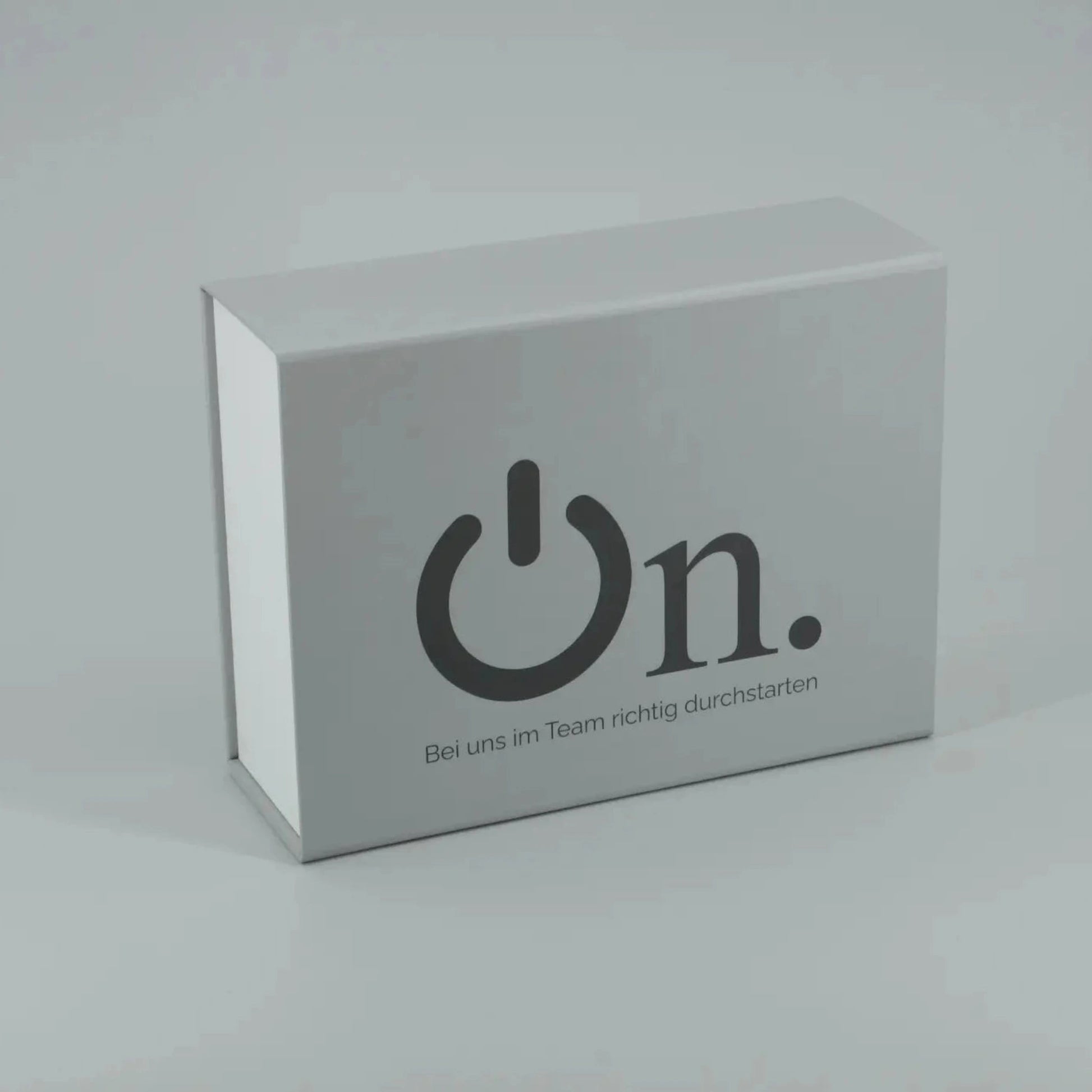 Diese einzigartige Schachtel wird mit 4 Magneten verschlossen und ist das ideale Willkommensgeschenk für neue KollegInnen.